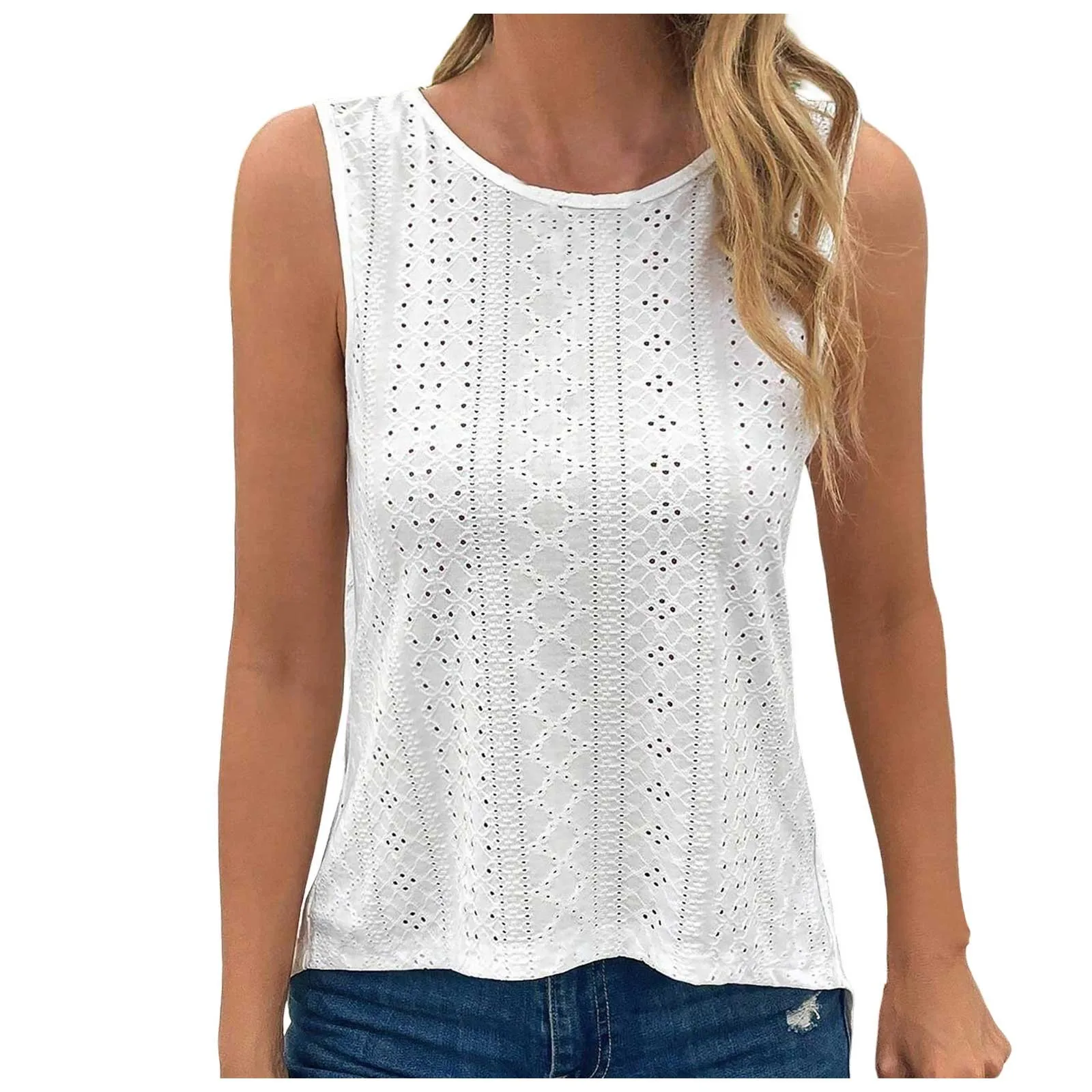 Women Fashion Solid Round Neck Sleeveless Casual Vest T Shirt Top